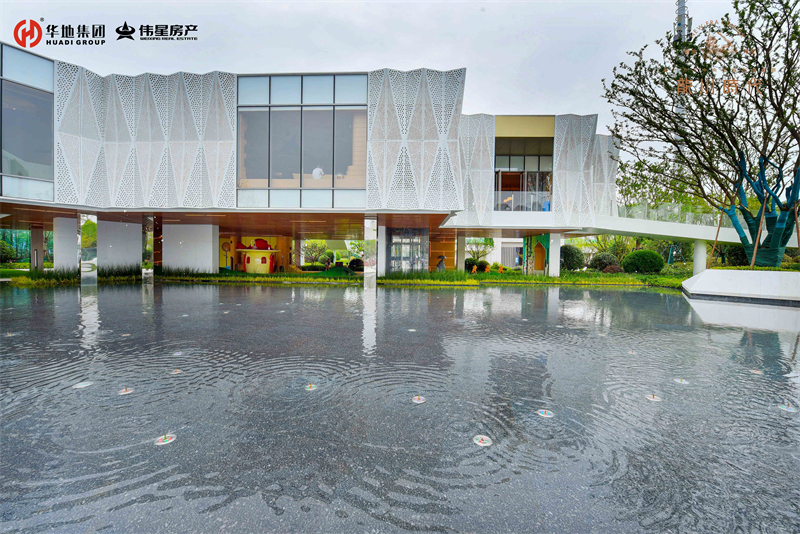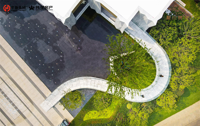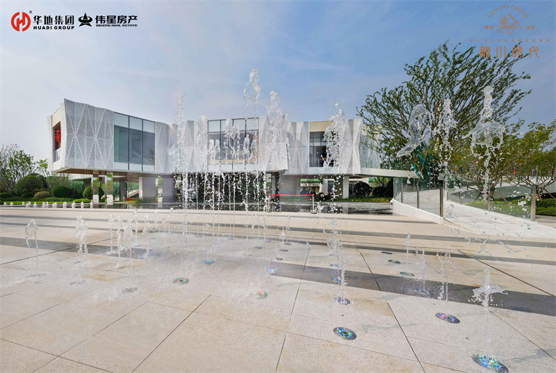 緩緩步入美好生活館前廣場(chǎng),依次映入眼簾的就是懸浮建筑體、鏡面水景、旱噴設(shè)計(jì)、自然綠景和特色鋪裝,從低到高,從現(xiàn)實(shí)到夢(mèng)幻,組成五維立體視覺(jué)。自然的留白,建筑的低語(yǔ),讓人流連忘返。