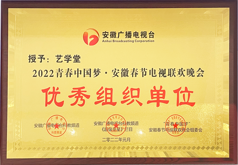 合肥藝學(xué)堂喜獲安徽省少兒春晚“優(yōu)秀組織單位”稱號(hào)