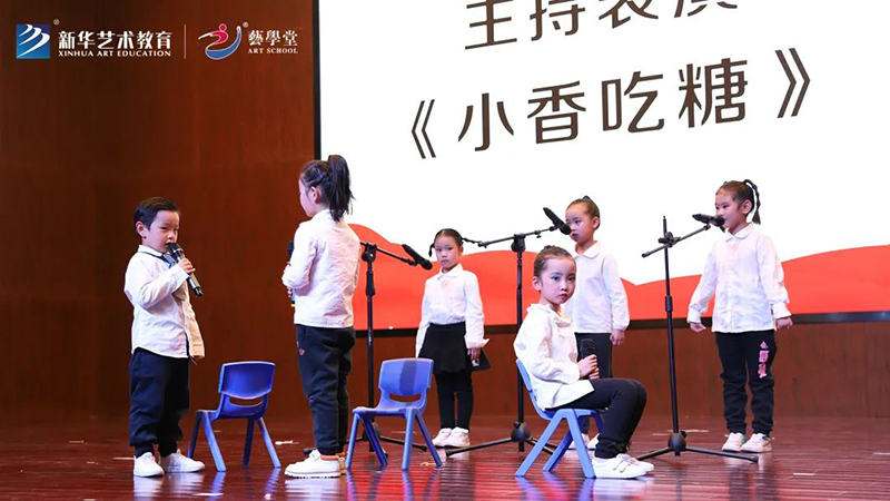 作為一站式藝術教育平臺,藝學堂一直將青少兒全面發展放在重中之重,其開設的表演主持課程,通過朗誦、故事、相聲等形式,學習韻律、節奏、語音、語氣變化來表現不同情緒,并加入適當的肢體語言做輔助表演,鍛煉孩子在公眾場合自我展示的信心和表現力,提高其語言表達能力。