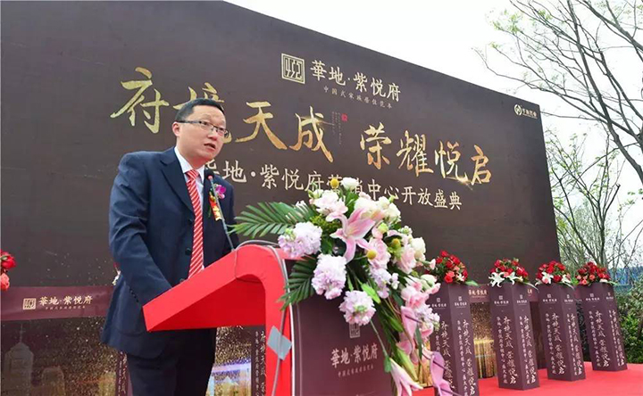 新華控股集團和華地置業集團領導出席開放儀式并剪彩,華地置業集團副總裁曹東生代表集團致辭。