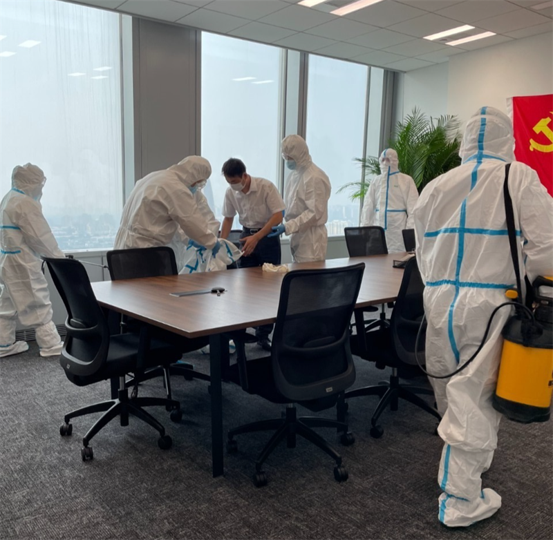 針對(duì)園區(qū)、案場(chǎng)、寫(xiě)字樓、學(xué)校等多個(gè)項(xiàng)目,嚴(yán)格遵循防疫工作標(biāo)準(zhǔn),對(duì)電梯、樓道、垃圾桶、車(chē)庫(kù)、出入口、兒童設(shè)施等公共區(qū)域堅(jiān)持每日進(jìn)行全覆蓋、高頻次消毒,對(duì)商寫(xiě)、學(xué)校等重點(diǎn)區(qū)域一天不低于兩次消毒作業(yè),不放過(guò)任何一個(gè)衛(wèi)生防疫死角。