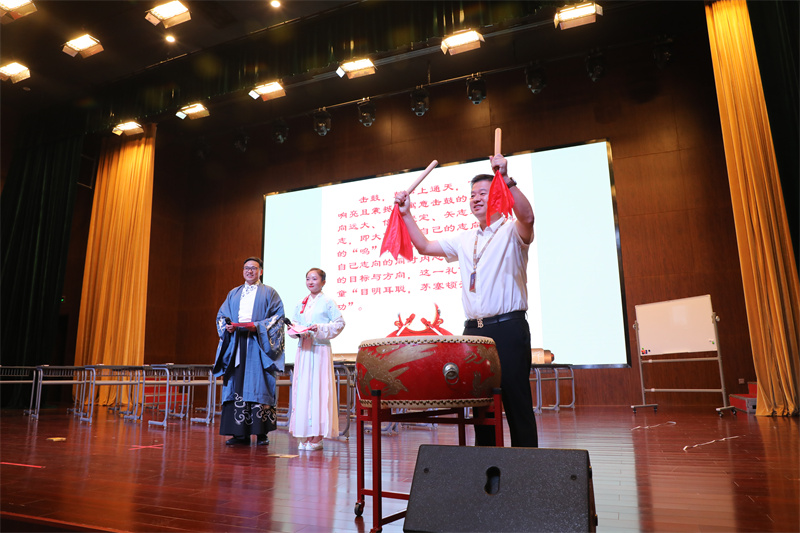 擊鼓三聲,以示從今啟蒙,以立志向。一通鼓:學子如斯,高山景行;二通鼓:五育并舉,六藝均衡;三通鼓:開筆啟智,慧悅人生。