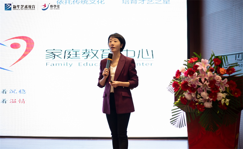 家庭教育影響著孩子身心健康的發(fā)展。活動伊始,藝學堂崔總就此次藝學堂成立家庭教育中心目的做詳細闡釋。她說道:“家庭教育是教育人的起點和基點, 要想使家庭教育成為滋潤孩子心田的潺潺不竭之泉,家長們需要了解教育的奧秘,找到適合自己孩子的教育方法。未來,藝學堂繼續(xù)將藝術(shù)教育與家庭教育相結(jié)合,通過藝學堂家庭教育中心,幫助家長從“合法”走向“合格”,從“合格”走向“優(yōu)秀”,從“優(yōu)秀”走向“卓越”。”
