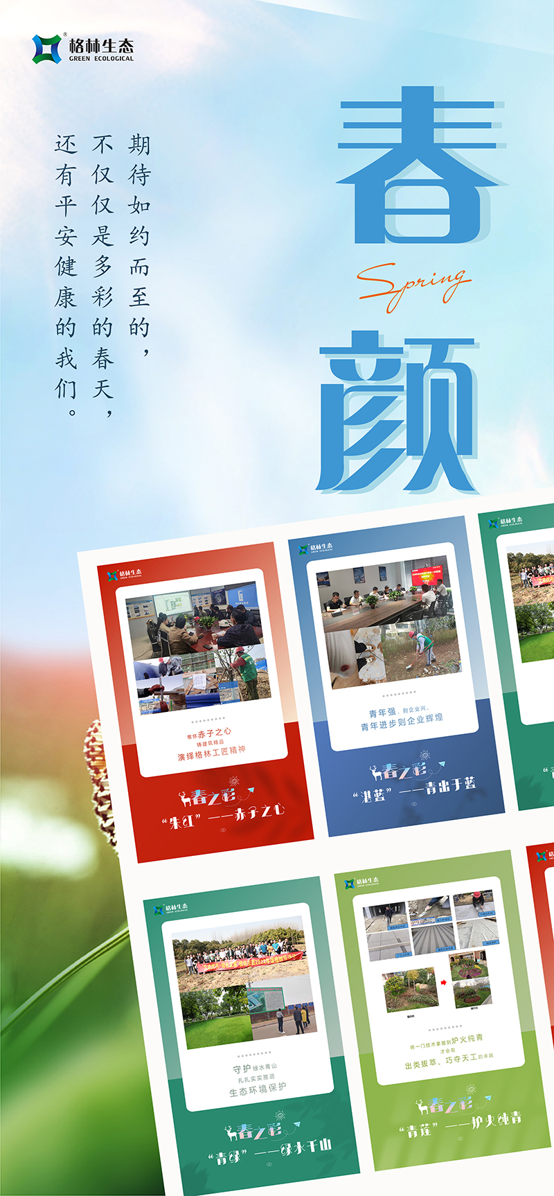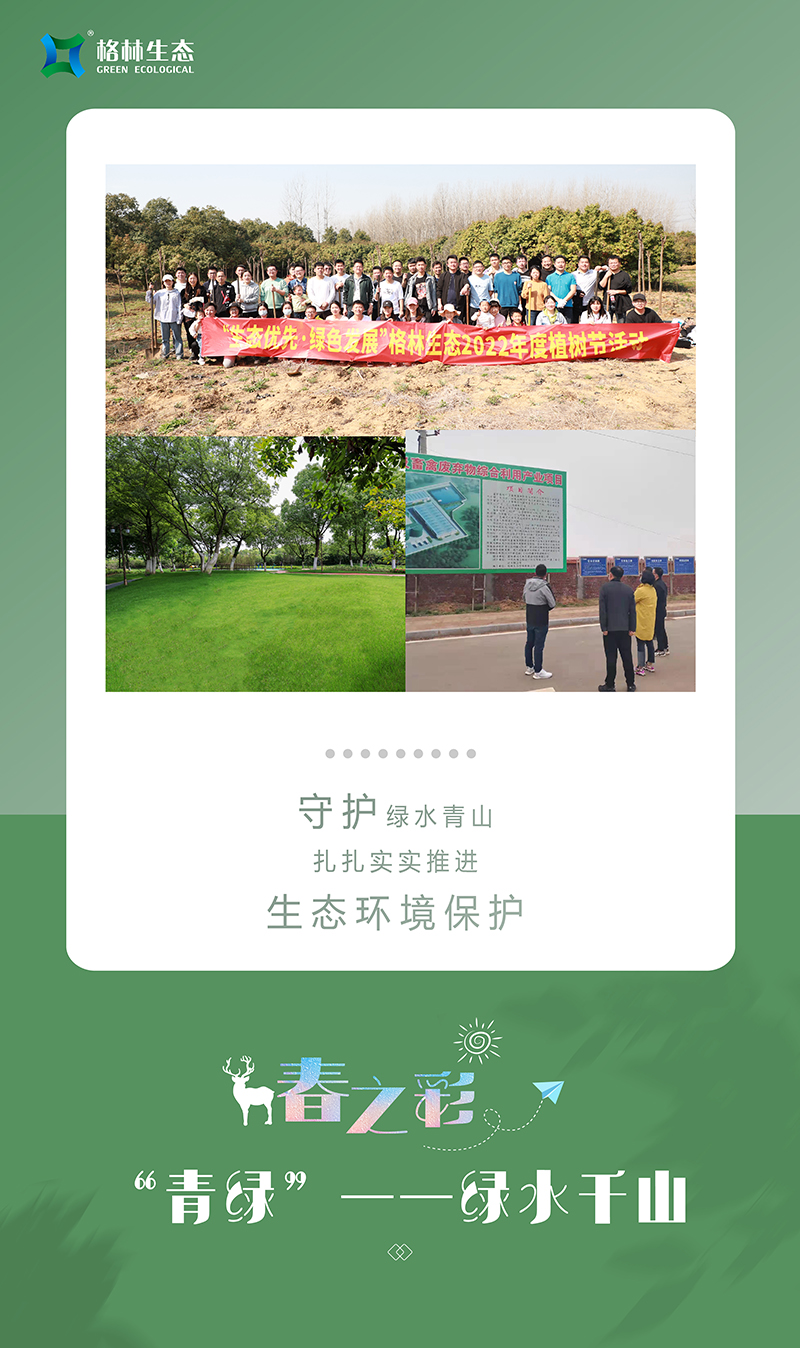 我們牢記“綠水青山就是金山銀山”的生態理念,每年開展植樹活動,今年共植三百余株欒樹和紅葉石楠球,讓綠色在大地蔓延;與此同時,格林生態積極履行社會責任,強化集約節約理念,與合作伙伴協同做好污水處理改善,促進水生態環境持續改善,努力實現經濟發展和生態環保雙贏目標?,F如今正是楊柳青青、草長鶯飛之時,傲人的青山綠水正在以秀美優雅的姿態展現出來!