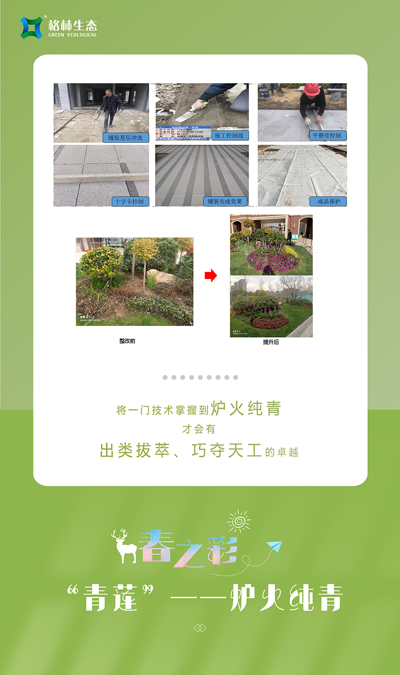 現如今,學員們經過整體的培養后,正以優異的工作技能、認真負責的態度和積極向上的思想投入到工作之中,青出于藍而勝于藍,相信這些“敢想、敢做、敢當”的格林青年,在格林生態這座絢麗舞臺上必將大放異彩!