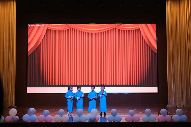 國(guó)際融合部一年級(jí)小學(xué)生朱莫凡表達(dá)了弟弟妹妹們的祝福。