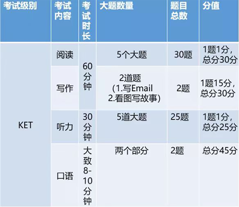 下面我們來(lái)看看KET分?jǐn)?shù)要求: