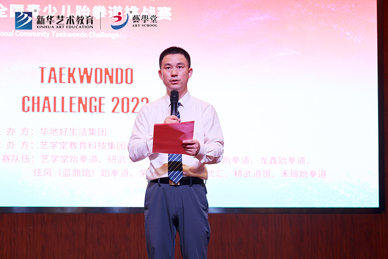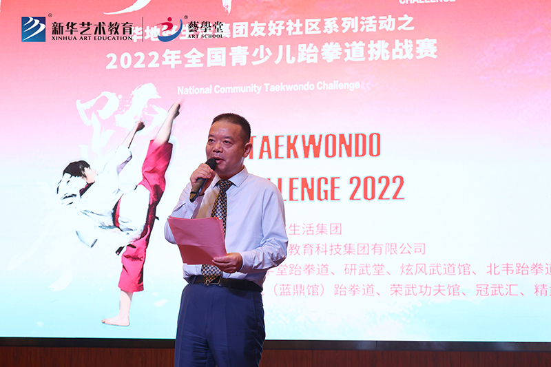 活動伊始,新華控股集團副總裁、華地好生活集團董事長管玉社做開幕動員,他表示:“華地好生活集團始終以“用心筑造美好生活”為服務(wù)愿景,用心構(gòu)筑美好社區(qū)服務(wù)體系,通過兒童友好和教育友好社區(qū)服務(wù),不斷為青少兒成長提供多維助力。此次華地好生活集團聯(lián)合藝學堂充分發(fā)揮雙方優(yōu)勢開展跆拳道挑戰(zhàn)賽,不僅為廣大青少兒提供更多藝術(shù)展示機會,同時,也致力于發(fā)揚團結(jié)、友誼、進步的體育精神,展現(xiàn)青少兒時代風采。”