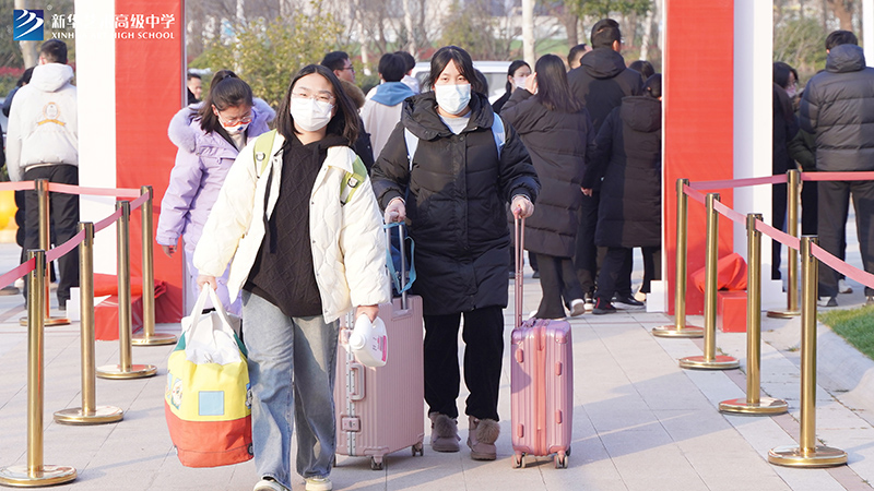 校領導班子和老師們在校正門歡迎同學們返校,校門口的安保人員列崗就緒指引交通及入校秩序,老師們從家長手中接過行李,有條不紊地幫助同學們搬運至宿舍,點點暖意在每位家長和學生心中流淌。