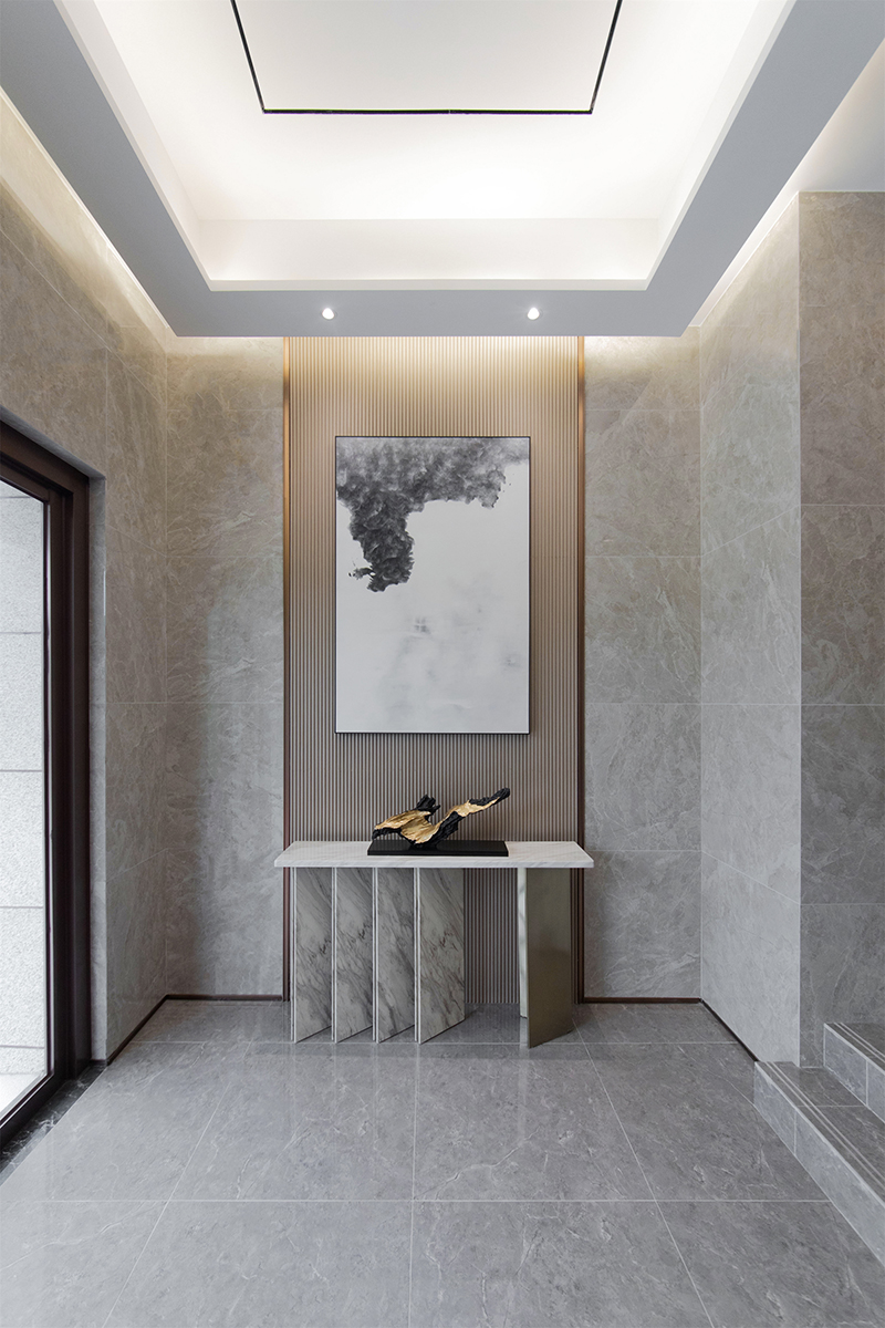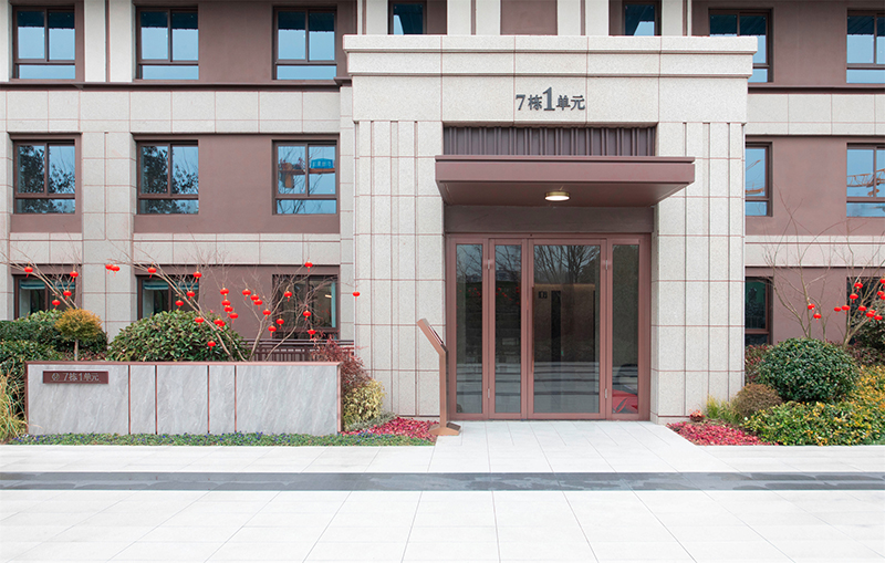 通過細節的營造傳遞舒心溫暖,單元入戶處,為解決室內外高差采用人性化無感緩坡入戶設計,既保障室外返水不易到室內,也便于推著嬰兒車、行李箱的業主安全出入。