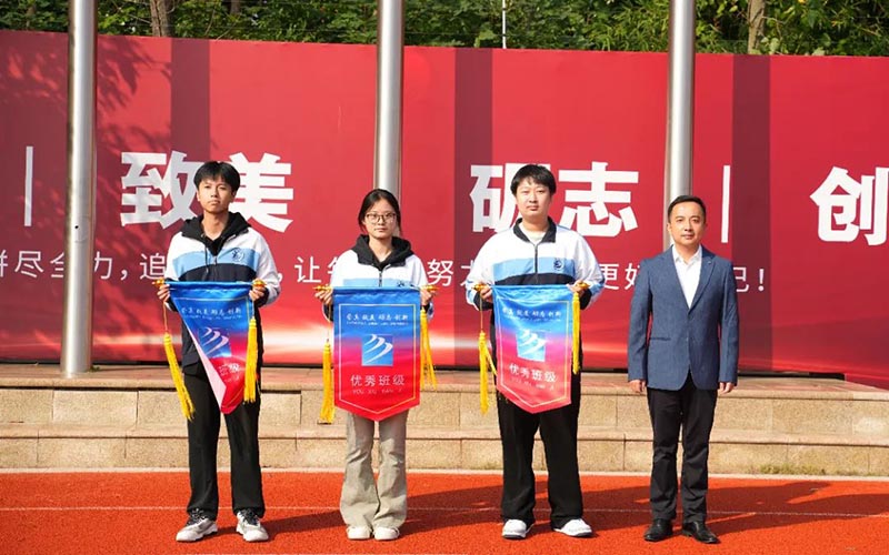 之后,由副校長陳俊、吳東、方明生分別為高中三個年級的優(yōu)秀班級頒發(fā)錦旗。通過流動紅旗的量化評比,讓學生自覺遵守日常行為規(guī)范,提高文明素養(yǎng),養(yǎng)成良好的行為習慣,從而形成良好的班風、校風。同時也號召所有班級向獲獎班級學習,并積極行動起來,規(guī)范自己的行為,重視環(huán)境衛(wèi)生、校紀校規(guī),積極為建設文明班級、優(yōu)秀校園貢獻自己的力量。